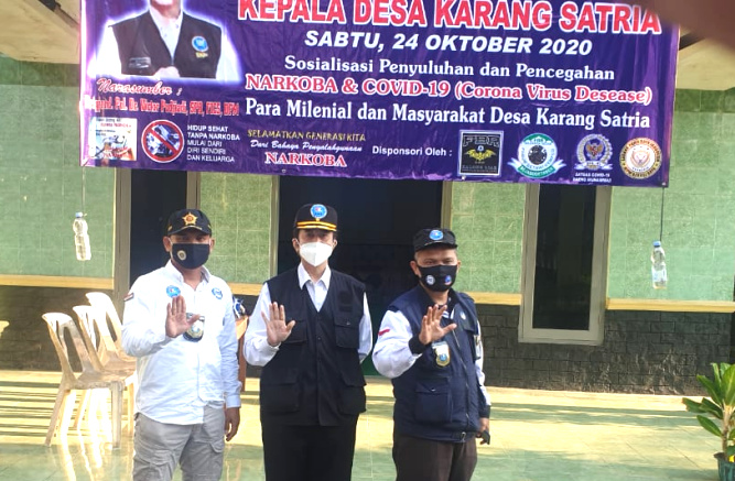 BEKASI – Sosialisasi bahaya Narkoba dan corona yang diadakan oleh Yayasan Rehabilitasi Kobra di Desa Karang Satria Tambun Utara Kabupaten Bekasi, Sabtu (24/10/2020). Acara berlangsung aman dan lancar.