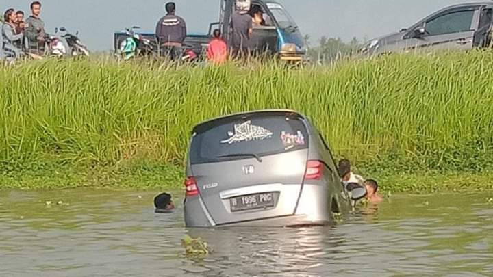 Ketua Komunitas Relawan Indonesia (KRI) Karawang, Elang Kurniawan menerangkan mobil Honda Freed warna abu tersebut mengalami kecelakaan tunggal nyebur ke sungai di sekitar Warungdoyong, Rebgasdengklok.Mobil tersebut melaju di jalan irigasi diduga mengambil jalur ke kiri sehingga roda kanan turun ke berm membuat pengemudi panik akhirnya nyebut ke sungai.