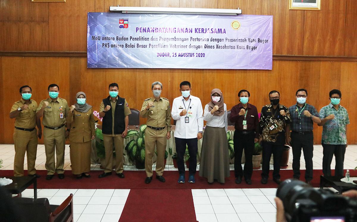 “Jadi, ada beberapa poin yang penting yang mewarnai penandatanganan MoU kali ini, yakni pertama kerja sama di bidang penanganan Covid-19 karena di Balitbangtan ini ada Balitvet yang memang selama ini sudah kita lakukan kerja sama sejak bulan Mei lalu untuk uji lab spesimen Covid-19,” kata Wakil Wali Kota Bogor, Dedie A, Rachim, Selasa (25/8/2020).