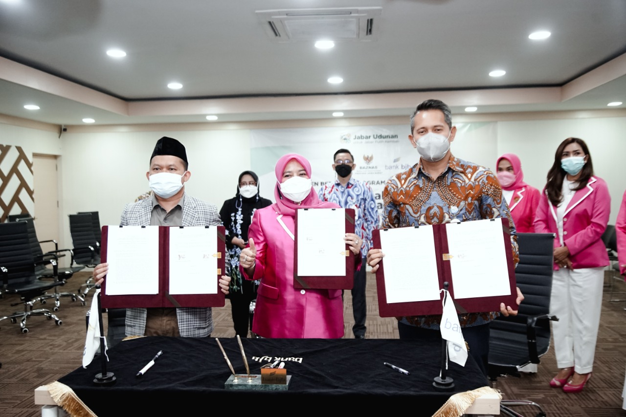 Jabar Bageur hasil kolaborasi antara Perhimpunan Perempuan Lintas Profesi Indonesia (PPLIPI) DPW Jawa Barat, Baznas Provinsi Jabar, dan bank bjb. Ketiga pihak menandatangani MoU di Kantor BJB Cabang Utama, Kota Bandung, Rabu (25/8/2021).