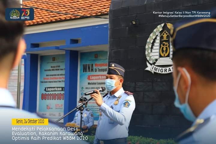 KARAWANG– Kepala Kantor Imigrasi Kelas II Non TPI Karawang, Winarko, mengaku optimis dapat meraih predikat Wilayah Birokrasi Bersih dan Melayani (WBBM) . Menjelang pelaksanaan Desk Evaluation yang akan digelar awal bulan depan.