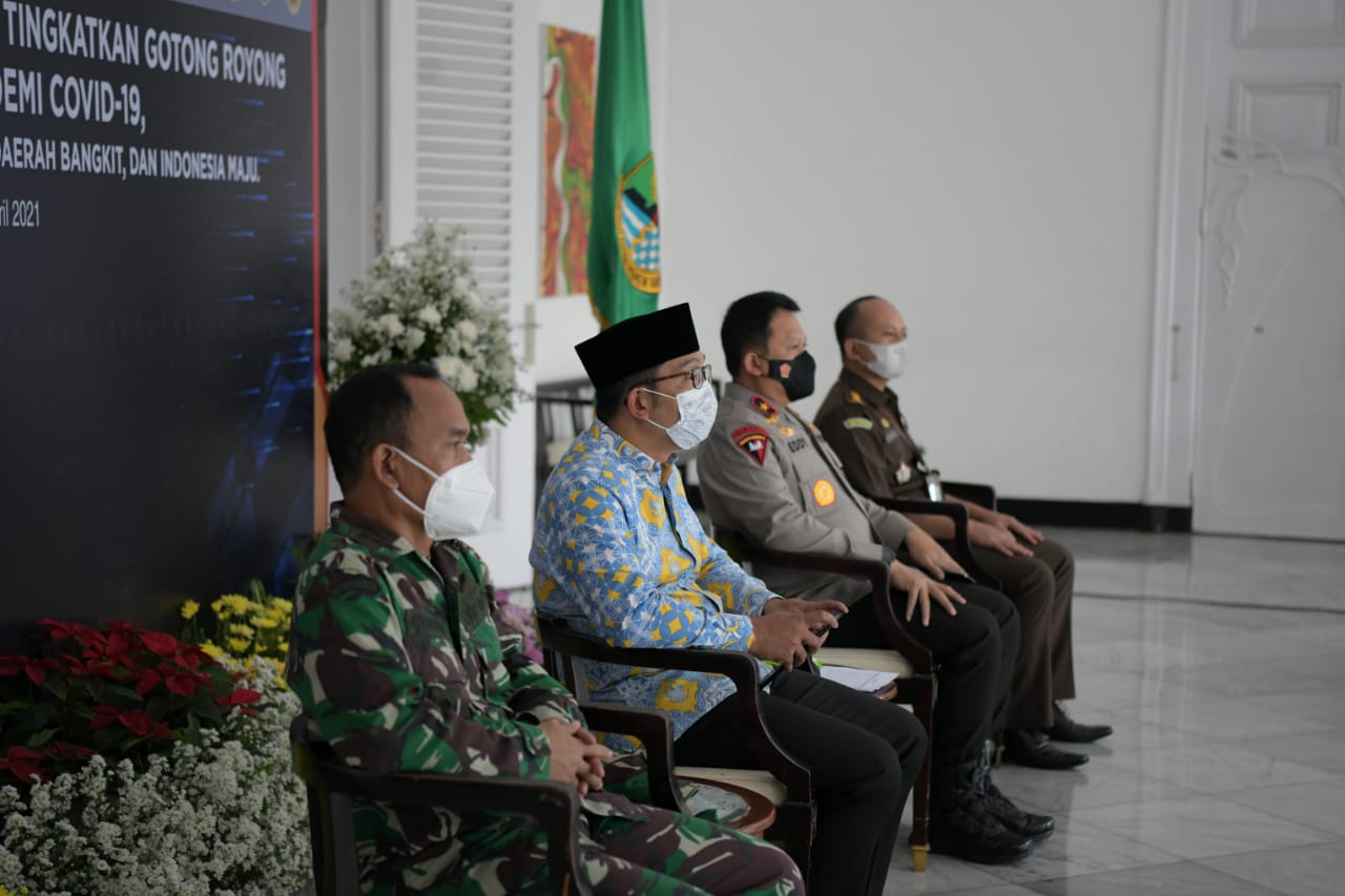 Gubernur Jawa Barat (Jabar) menghadiri peringatan Hari Otonomi Daerah (OTDA) XXV Tahun 2021 di Gedung Pakuan, Kota Bandung, Senin (26/4/2021). (Foto: Yogi P/Biro Adpim Jabar)