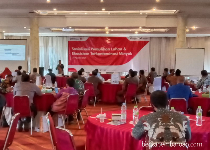 KARAWANG – Anak perusahaan Pertamina Hulu Energi (PHE), Pertamina Hulu Energi Offshore North West Java (PHE ONWJ) melakukan Sosialisasi Pemulihan Lahan dan Ekosistem Terkontaminasi YYA -1 di Alamsari, Interchange Karawang, Jawa Barat. (27/8/20).