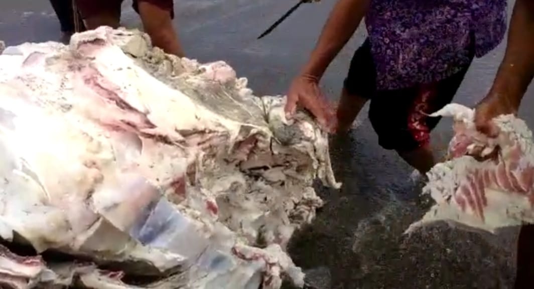 Hiu tersebut sontak menjadi buruan dan tontonan warga sekitar. Warga pun berburu untuk mendapatkan daging ikan paus tersebut untuk di masak.
