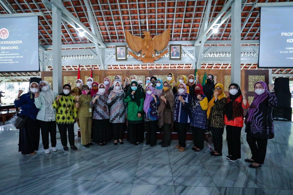 BANDUNG – DENGAN beragam inovasinya, Dewan Kerajinan Nasional Daerah (Dekranasda) Kota Bandung telah menjadi benchmark bagi sejumlah daerah lain di Indonesia. Hal itu terbukti dari kunjungan PKK dan Dekranasda Kota Makassar untuk menimba ilmu dan pengalaman dari Dekranasda Kota Bandung, Senin (26 Oktober 2020).