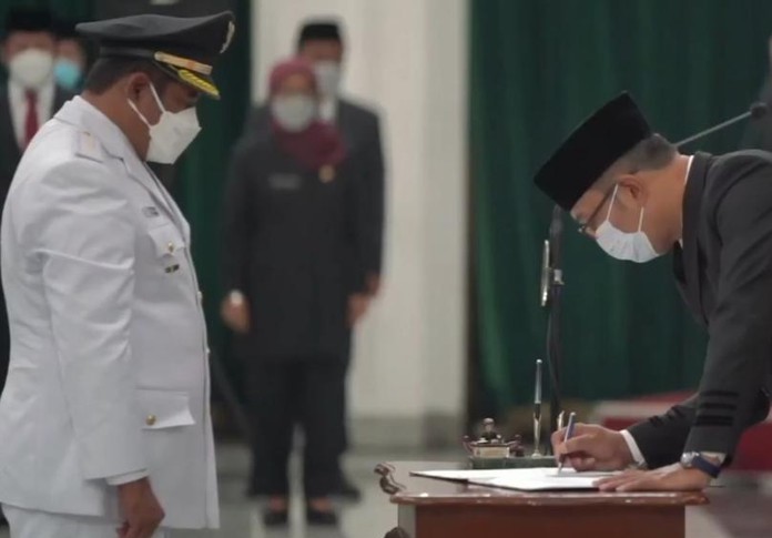 BANDUNG – Gubernur Jawa Barat Ridwan Kamil melantik Akhmad Marjuki sebagai Wakil Bupati Bekasi di Gedung Sate, Kota Bandung pada Rabu (27/10/2021). Ia akan mengisi posisi wakil bupati untuk periode 2017 – 2022.