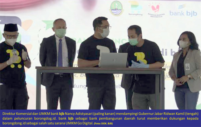 bank bjb juga berkolaborasi dengan Pemerintah Provinsi Jawa Barat dalam menghadirkan platform marketplace borongdong.id. Marketplace ini merupakan sarana yang didesain khusus bagi pelaku UMKM agar dapat membantu penjualan khususnya di masa pandemi Covid-19 sekaligus memberikan apresiasi kepada para ASN yang menjadi captive market bank bjb. Pelaku UMKM yang berjualan di borongdong.id merupakan hasil kurasi di mana sebagian di antaranya adalah UMKM binaan bank bjb.