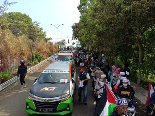 KAB. BANDUNG BARAT,- Sejumlah masa dari Aksi Cepat Tanggap (ACT) Kabupaten Bandung Barat bersama ratusan elemen masyarakat melakukan longmarch dan berorasi di Depan Kantor Pemkab Bandung Barat Jawa Barat pada Kamis (27/5/21) menyerukan keadilan bagi warga Palestina.