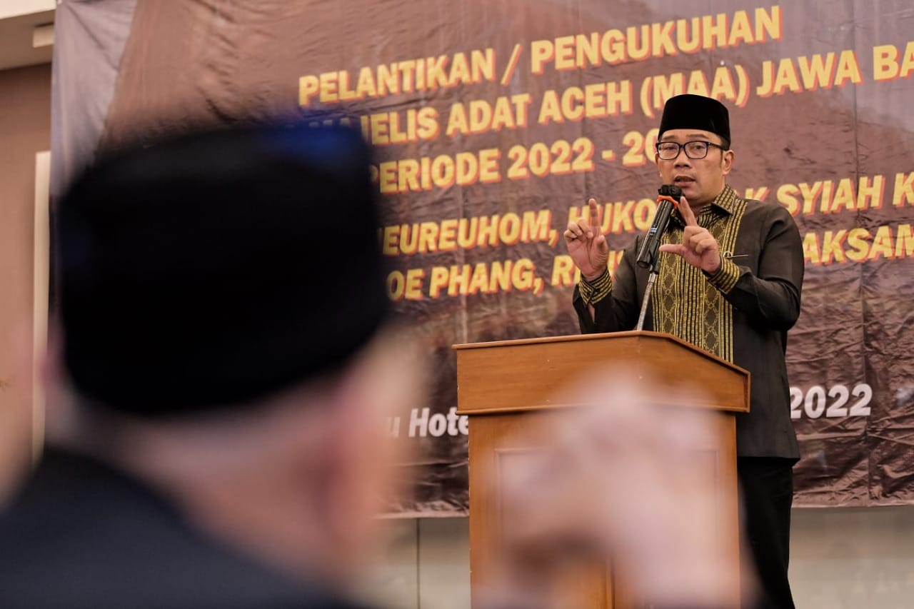 “Tak hanya secara budaya, sejarah dan pemerintahan, tapi Aceh punya hubungan secara pribadi dengan saya,” ucap Ridwan Kamil dalam sambutannya pada pelantikan pengurus Majelis Adat Aceh Perwakilan Jabar periode 2022 – 2027 di Bandung, Minggu (26/6/2022) malam.