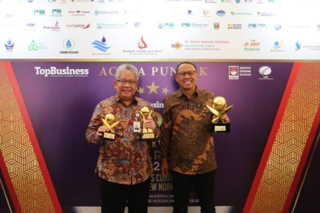 Tak tanggung-tanggung, bank bjb memperoleh empat penghargaan sekaligus dalam ajang yang dihelat di Golden Ballroom The Sultan Hotel, Jakarta pada Kamis (27/8/2020) ini. Keempat penghargaan itu antara lain TOP Pembina BUMD 2020 kepada Gubernur Ridwan Kamil, TOP of the TOP BUMD 2020 kepada bank bjb, TOP BUMD Awards 2020 # BPD # Bintang 5 kepada bank bjb, dan TOP CEO BUMD 2020 untuk Direktur Utama bank bjb Yuddy Renaldi. Penghargaan diterima oleh Direktur Utama bank bjb Yuddy Renaldi dan Direktur Kepatuhan bank bjb Agus Mulyana, untuk penghargaan TOP Pembina BUMD yang diterima oleh Gubernur Jawa Barat Ridwan Kamil diwakilkan oleh Dra. Hj. I Gusti Agung Kim Fajar Wiyati Oka, M.Si Kepala Biro BUMD dan Investasi Provinsi Jawa Barat.