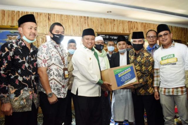 PURWAKARTA,– Wakil Gubernur (Wagub) Jawa Barat (Jabar) Uu Ruzhanul Ulum menyerahkan bantuan paket sembako dan alat pertanian Program Santri Tani (Santani) Jabar Juara bagi Pondok Pesantren Miftahul Huda At Taqwa di Desa Nangewer, Kecamatan Darangdan, Kabupaten Purwakarta, Jumat (28/8/2020).