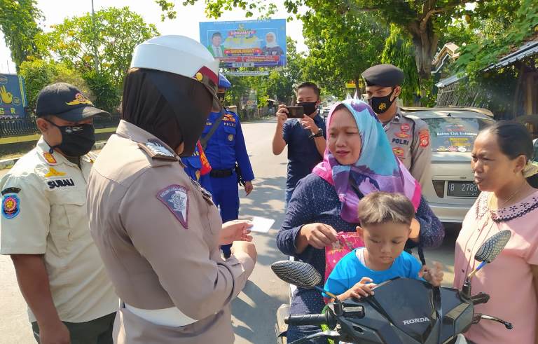 Selain pemberian sanksi, terhadap para pelanggar selanjutnya dibagikan masker dengan tujuan agar lebih disiplin dalam penggunaan masker.