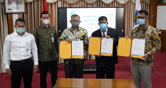 SUMEDANG, – bank bjb menyerahkan sejumlah paket dukungan untuk menunjang kegiatan operasional akademik segenap civitas akademika kampus Institut Pemerintahan Dalam Negeri (IPDN). Bantuan diserahkan secara simbolis dalam acara silaturahmi bertempat di Gedung Graha Wyata Praja IPDN, Jalan Ir. Soekarno Desa, Kecamatan Jatinangor, Kabupaten Sumedang, Provinsi Jawa Barat, Selasa (27/10/2020).