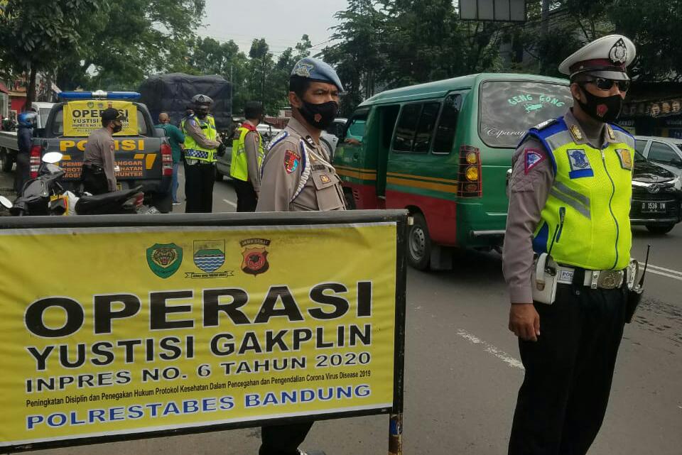 Kapolrestabes Bandung Polda Jabar Kombes Pol Ulung Sampurna Jaya, S.I.K,.M.H. melalui Kapolsek Astana Anyar Kompol Yuni Purwanti Kusuma Dewi, S.H,.M.M. menuturkan Operasi Yustisi Gaktiplin Inpres No 06 tahun 2020 kita laksanakan dengan 2 metode yaitu stasioner dan Mobile.