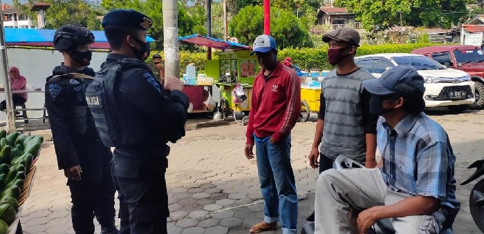 Oleh karena itu, anggota Kompi 3 Batalyon B Pelopor Sat Brimob Polda Jabar yang tergabung dalam Tim Covid-19 memberikan himbauan kepada masyarakat terkait prokes sebagai bentuk upaya cara pencegahan dini terhadap pandemi Covid-19 selama diterapkannya AKB.