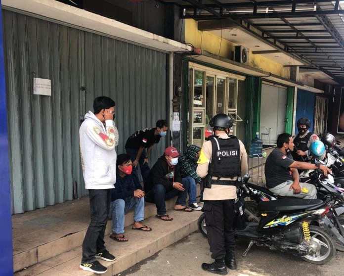 Aiptu Jajang Abdul Haris melakukan penyuluhan dan mengingatkan terkait pentingnya menggunakan masker kepada Remaja yang tengah nongkrong di sebuah Pertokoan di daerah Dangdeur Rancaekek Kabupaten Bandung agar senantiasa waspada dan berhati – hati saat berada diluar rumah.