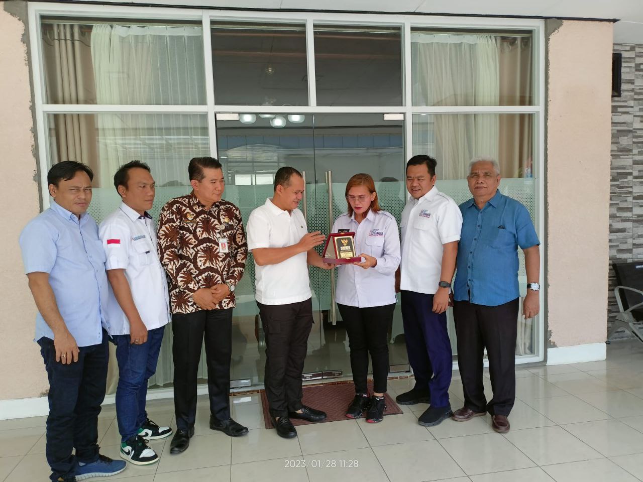 Diakhir pertemuan, Bupati Batubara juga menyerahkan plakat kepada Ketua SMSI Sumut, Erris J Napitupulu sebagai cenderamata. ()