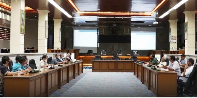 Panitia Khusus (Pansus) DPRD Kota Cirebon Raperda tentang Penyelenggaraan Utilitas Kabel menggelar rapat bersama sejumlah instansi terkait membahas penataan kabel udara, Jumat (28/5/2021). Dalam rapat yang berlangsung di ruang rapat Griya Sawala gedung DPRD itu, pansus meminta saran dan masukan agar pembuatan raperda lebih optimal.