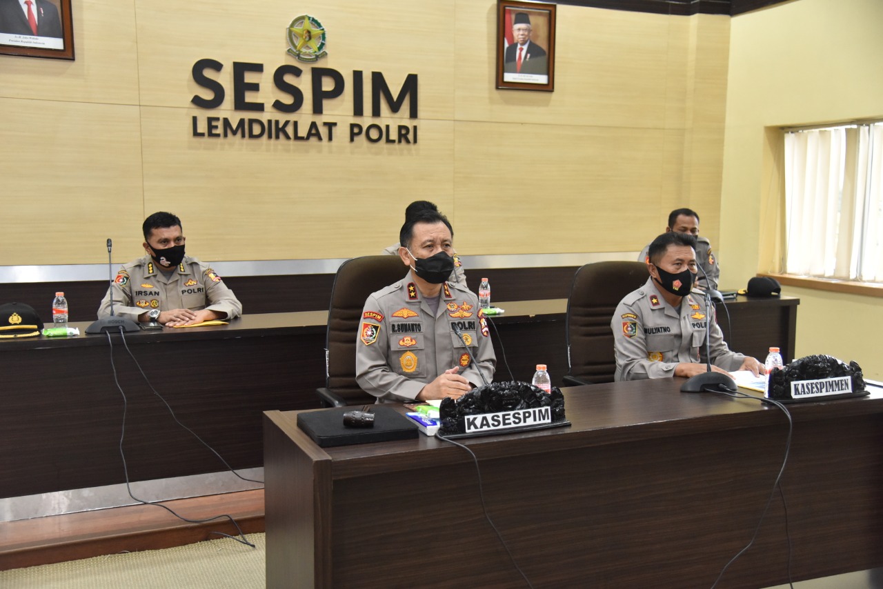 BANDUNG – Kasespim Polri, Irjen Pol Rokhmad Sunanto membuka Pelatihan Olah Starategi bagi Peserta didik (serdik) Sespimmen angkatan 60 secara Virtual, di Kampus Sespim Jl. Maribaya 53 Lembang Bandung, Selasa (29/9/2020).