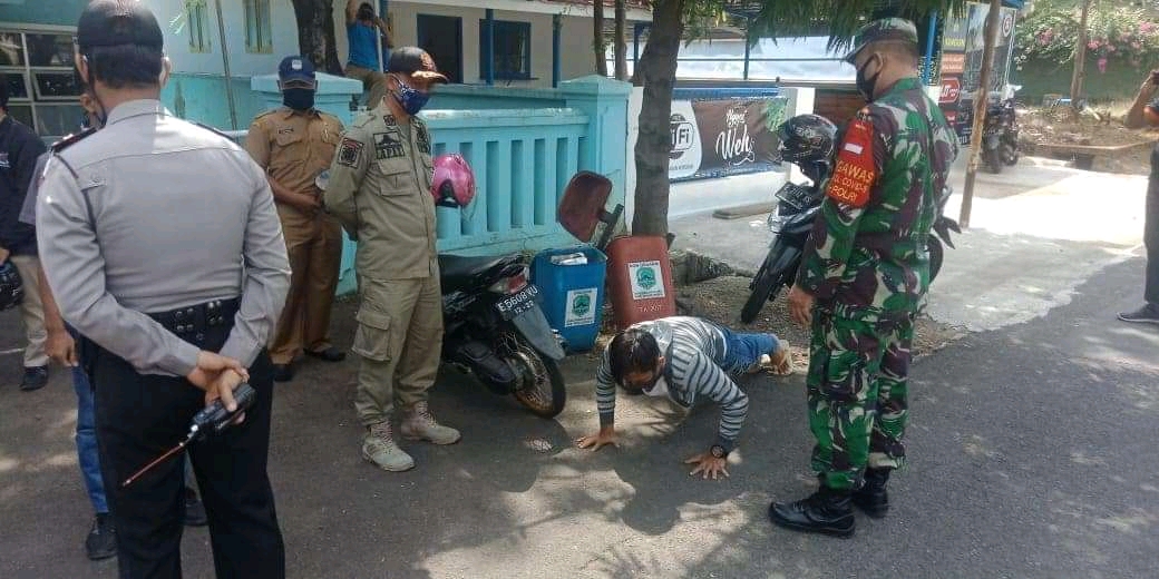 MAJALENGKA | Hukuman sosial berupa mengucapkan dasar negara yakni Pancasila sampai dengan hukuman fisik berupa Push up menanti para pelanggar protokol kesehatan di wilayah kecamatan Majalengka Kabupaten Majalengka.