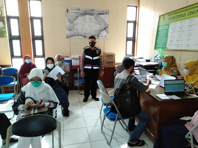 CILEUNYI – Jajaran Bhabinkamtibmas Desa Cununuk Polsek Cileunyi Polresta Bandung Aipda Heri Maryadi lakukan pemantauan kegiatan vaksinasi agar dapat berjalan dengan aman dan lancar. Jum’at (30/04/2021)