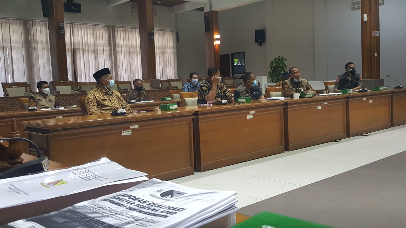 KAB. BANDUNG,- Para Lurah di Kabupaten Bandung Jawa Barat menyampaiakan aspirasi kepada Komisi A DPRD Kab Bandung dalam jadwal evaluasi semester di Gedung DPRD Kab Bandung Soreang pada Kamis (29/7/21).