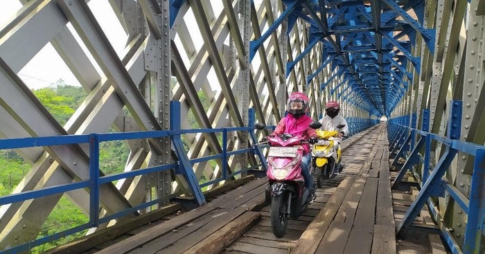 CIAMIS – Jembatan Cirahong yang berada di perbatasan Kabupaten Tasikmalaya dan Ciamis, hanya bisa dilintasi oleh kendaraan roda dua dan pejalan kaki saja mulai September 2021.