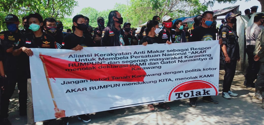 Salah seorang Ketua PAC LSM Rengasdengklok, Roni Karembong dalam orasinya menegaskan menolak keras kehadiran KAMI di Karawang.