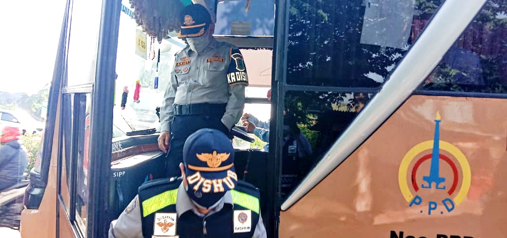 TVBERITA.CO.ID – Dinas Perhubungan (Dishub) Karawang memeriksa penerapan protokol kesehatan di Bus Karyawan yang melintas di Interchange Tol Karawang Barat, Rabu (30/9/2020).