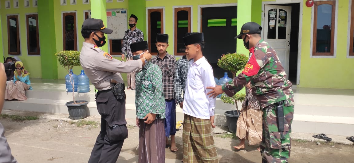 INDRAMAYU – Kapolsek Krangkeng Polres Indramayu Polda Jabar AKP I Nyoman Dita, S.H., bersama anggota Polsek Kreangkeng jajaran Polres Indramayu Polda Jabar mengedukasi remaja untuk membiasakan diri disiplin mengikuti anjuran pemerintah tentang protokol kesehatan 3M, (Memakai Masker, Mencuci Tangan dan Menjaga Jarak).