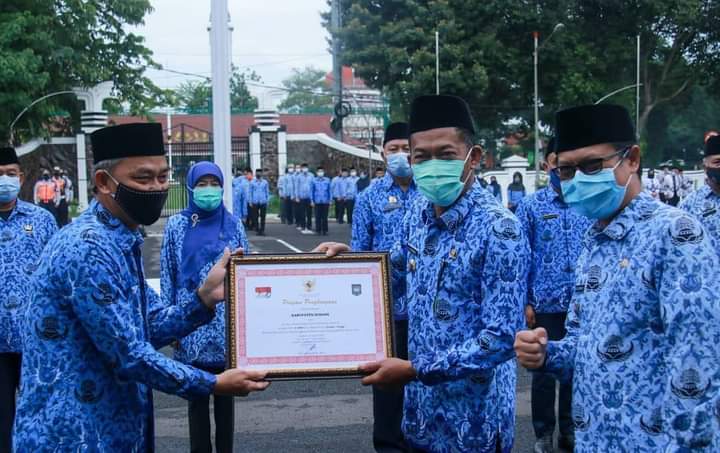 SUBANG– Dalam rangka peringatan Hari Korpri ke 49, hari PGRI dan Hari Guru Nasional ke-75, Pemerintah Daerah Kabupaten Subang menyelenggarakan upacara peringatan Hari Korpri ke 49, hari PGRI dan Hari Guru Nasional ke-75 tingkat Kabupaten Subang dihalaman kantor Bupati Subang. Senin (29/11/20).