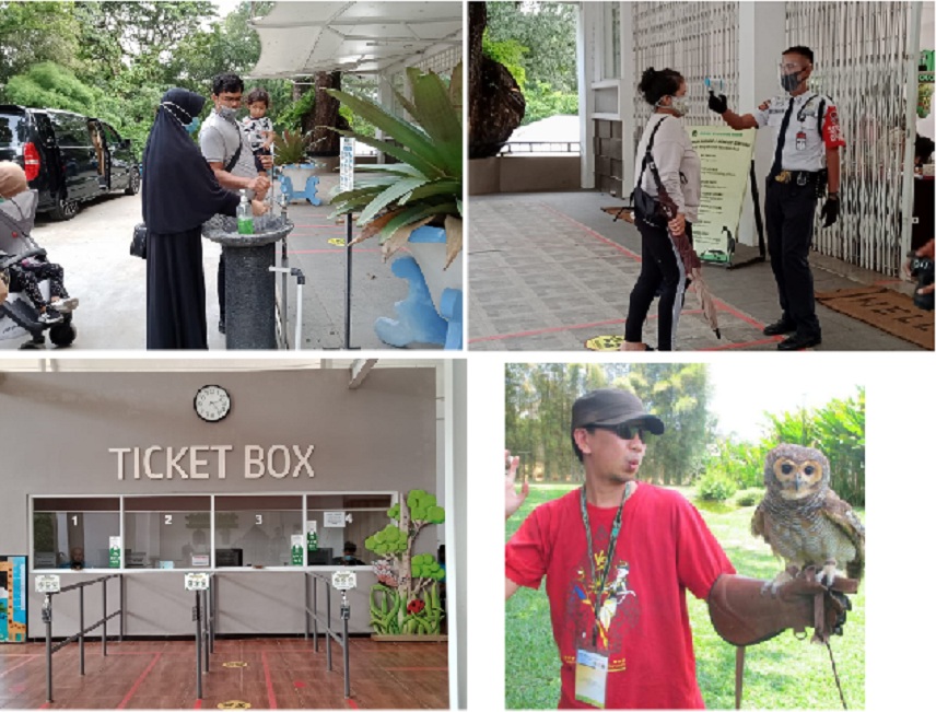 Akhir pekan lalu, Aan sebagai Markom Kebun Binatang Tamansari Bandung, menjelaskan di masa Pandemi Covid-19 ini, pengunjung Kebun Binatang Tamansari Bandung di hari libur sebanyak 500 orang, sedangkan pada hari-hari biasa rata-rata sebanyak 300 orang per hari. Bagi pengunjung, sebelum masuk ke lokasi kebun binatang, para petugas keamanan melakukan cek suhu tubuh dengan Thermogun dan diminta mencuci tangan di depan pintu masuk. Selain di depan, pengelola juga menyiapkan tempat mencuci tangan di dalam lokasi kebun binatang. Bahkan sebelum membeli tiket masuk, pengelola menyediakan hand sanitizer untuk digunakan sebelum transaksi dengan petugas kebun binatang. Dan para pengunjung pun diharuskan menggunakan masker, bagi yang tidak menggunakan masker maka tidak diperkenankan masuk ke lokasi taman wisata kebun binatang.