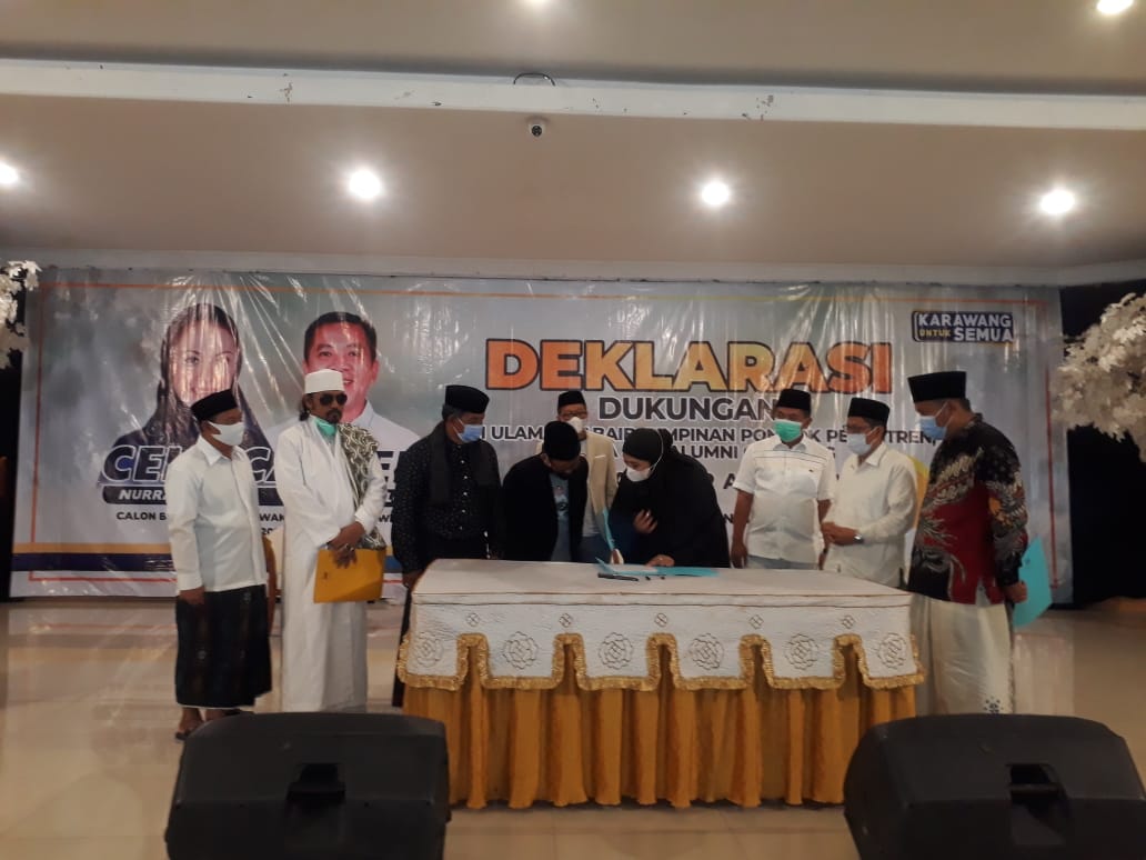 Sementara itu Calon Bupati Karawang Cellica Nurrachadiana mengaku bersyukur dengan deklarasi Himpunan Alumni Miftahul Huda, Alumni Ponpes Cipasung, Alim Ulama, dan Habaib.