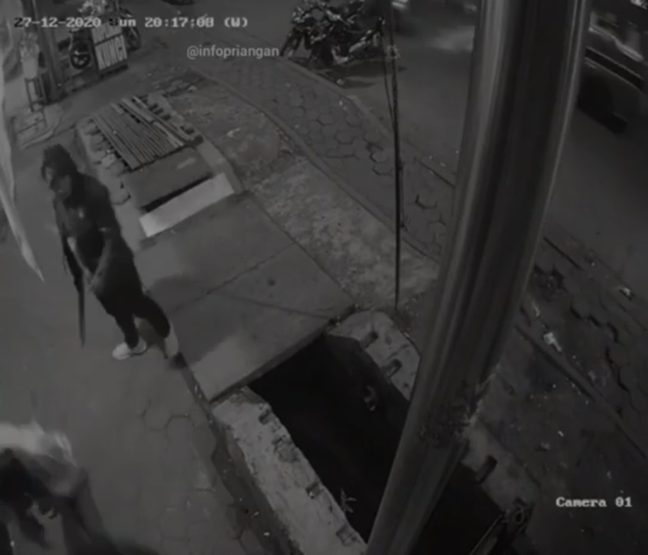 BANDUNG — Rekaman CCTV seorang pria membawa senjata tajam jenis golok sambi berlari mengejar seseorang viral di media sosial. Tak hanya itu, pria tersebut mengejar dan diduga hendak membacok seorang warga yang ada di sekitarnya. Kejadian tersebut terjadi di Jalan Ibrahim Adjie, Kelurahan Binong, Kota Bandung, Minggu (27/12/2020).