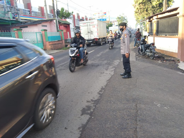 Gatur pagi hari ini dilaksanakan oleh Aiptu Agus , mengingat banyak kendaraan yang lalu lalang melintas membuat arus lalu lintas cukup ramai. Namun dengan kehadiran personil Polri tersebut sehingga para pemakai jalan dapat dengan nyaman dan lancar dapat beraktifitas.