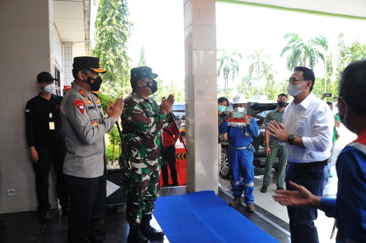 Komisaris Utama PT Pertamina Basuki Cahaya Purnama (Ahok) tiba di Pertamina RU VI Balongan Indramayu, disambut oleh Kapolda Jabar, Pangdam III/Slw dan GM Pertamina RU VI Balongan, selanjutnya menuju ruang transit dan melaksanakan rapat Internal PT Pertamina. (Robi/CIBA).