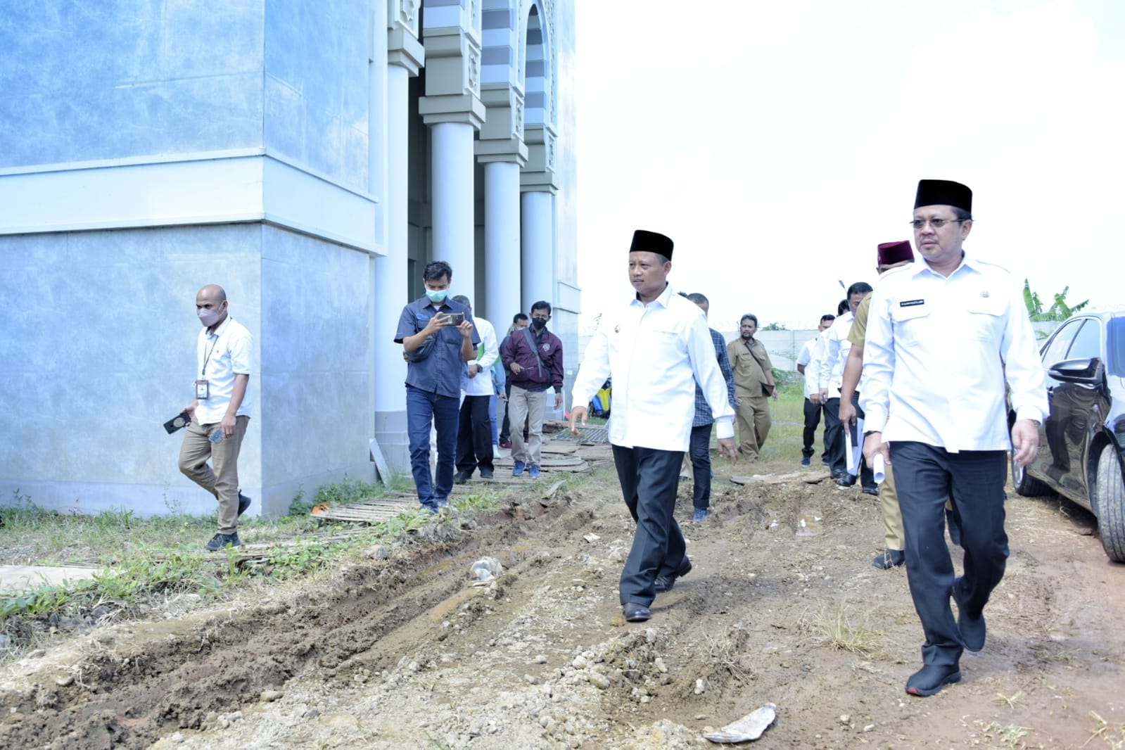 KAB. INDRAMAYU,–Wakil Gubernur Jawa Barat Uu Ruzhanul Ulum bersama Kepala Kantor Wilayah Kementerian Agama Provinsi Jabar meninjau progres pembangunan Embarkasi Haji Indramayu di Kecamatan Lohbener, Kabupaten Indramayu, Senin (30/5/2022).