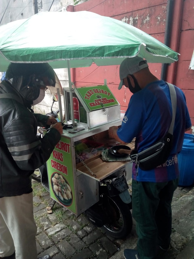 Mang Udin, sebutan akrab lelaki yang setiap hari tidak bosan-bosannya membeli ratusan Tahu kecil, guna memenuhi dagangannya. Tahu Gejrot, asal Kota Udang Cirebon menjadi adalan bisnisnya di saat Pandemi Covid-19 melanda Indonesia di awal Maret 2020 lalu. Pandemi covid, membuat Udin yang telah menggeluti profesinya selama puluhan tahun sebagai kuli bangunan berhenti total. Pertengahan Maret lalu, dia terpaksa kehilangan pekerjaannya, lantaran proyek bangunan tempat ia bekerja berhenti beroperasi. Tak ada kegiatan pembangunan, buruh harian terpaksa di-PHK, dan pekerja tetap sebagian dirumahkan dengan honor separuhnya.