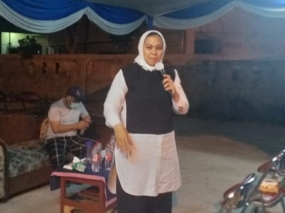 KARAWANG- Calon bupati petahana Cellica Nurrachadiana lakukan sosialisasi Pilkada di Lapangan Sakinah Village, Kelurahan Karawang Wetan, Karawang Timur, Jumat (30/10/20) malam.