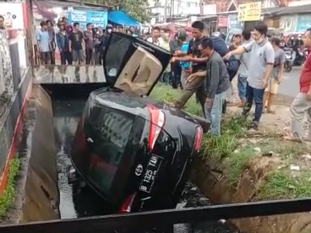 Polisi dibntu warga yang datang ke lokasi kejadian cukup kesulitan mengevakuasi kendaraan dari dasar saluran air sehingga harus menggunakan mobil derek untuk evakuasi kendaraan.