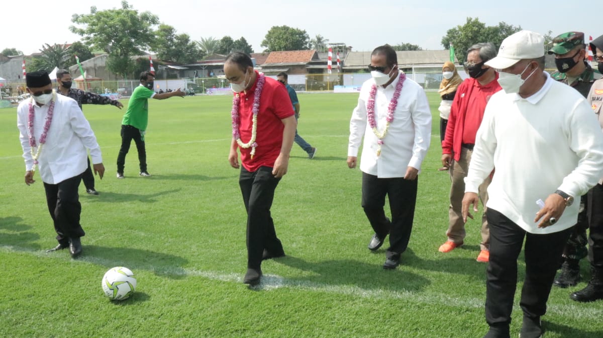 KABUPATEN BEKASI — Wakil Bupati Bekasi, Akhmad Marjuki, menghadiri peresmian Stadion Mini Sepak Bola Setiamekar, di Desa Setiamekar, Kecamatan Tambun Selatan, Sabtu (30/10/2021).