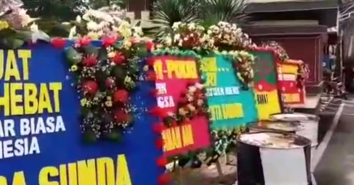 Selain di Mapolda Jawa Barat, karangan bunga juga tampak berjejer di Gedung Sate dan Markas Kodam III/Siliwangi. Isi tulisan karangan bunga rata-rata ucapan dukungan dan terimakasih kepada TNI/Polri dan Pemerintah atas pembubaran FPI.