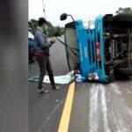 Bus Pengangkut 9 Pasien Covid-19 Terguling di Tol Jagorawi