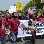 INDRAMAYU — Para jurnalis di Kabupaten Indramayu berunjuk rasa memprotes pelarangan liputan oleh KPU setempat, Senin (14/9/2020). Ketua KPU Indramayu bahkan didesak