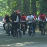 BOGOR–Presiden Joko Widodo gowes mengelilingi Kebun Raya Bogor membagikan masker pada Sabtu, (22/8/2020) pagi. Jokowi tampak didampingi putra bungsunya, Kaesang Pangarep. Berdasarkan