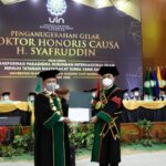 BANDUNG – Mantan Wakil Kepolisian RI Komjen Pol (Purn) Syafruddin, mendapatkan gelar Doktor Honoris Causa (HC) melalui sidang terbuka Universitas Islam Negeri (UIN)