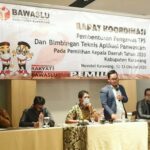 KARAWANG- Badan Pengawas Pemilu (Bawaslu) Kabupaten Karawang menggelar rapat koordinasi pembentukan Pengawas Tempat Pemungutan Suara (PTS) sekaligus Bimbingan Teknis aplikasi Penga Pengawas