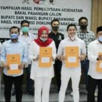 KARAWANG- Hasil Tes Kesehatan dan verifikasi dokumen syarat tiga bakal pasangan calon (Bapaslon) Bupati dan wakil bupati Karawang disampaikan Komisi Pemilihan Umum