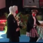 BN KARAWANG – Bupati Karawang Celica Nurachdiana berlenggok menunjukan tarian goyang karawang khas ciptaanya yang diberi nama goyang karawang tandang dalam acara