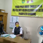 CILEUNYI – Mengantispasi penyebaran covid 19 di pedesaan, Binmas Polsek Cileunyi Polresta Bandung Polda Jabar, Aiptu S.I.Mardiana melakukan pengecekan posko PPKM skala